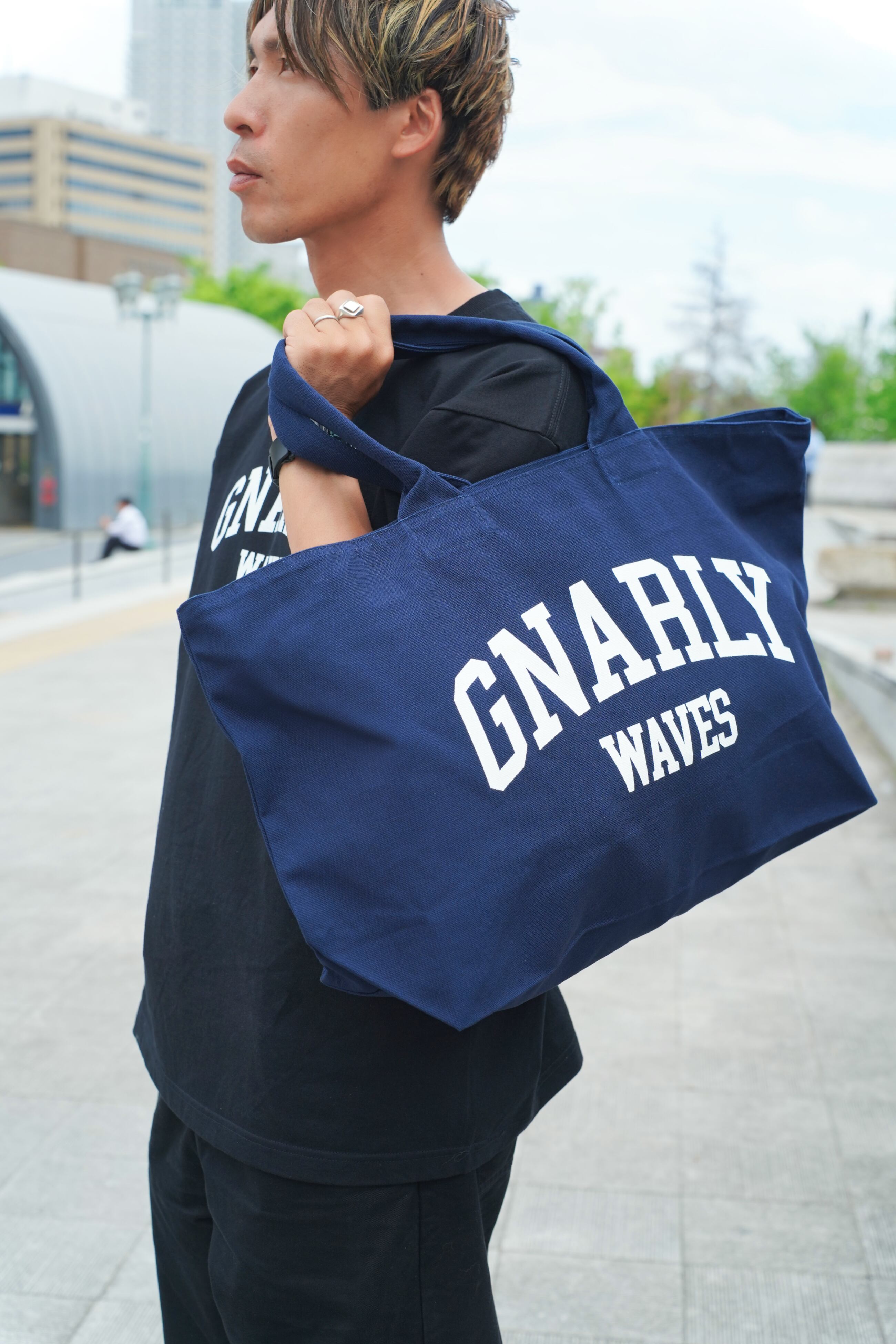 GNARLYWAVESの大容量トートバッグ。